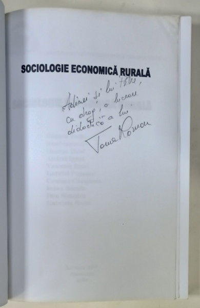SOCIOLOGIE ECONOMICA RURALA , coordonator TOMA ROMAN , 2004 , DEDICATIE *