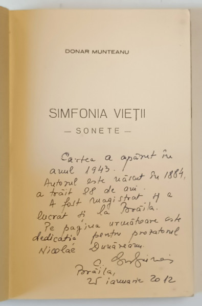 SONETE de DONAR MUNTEANU , 1943 , DEDICATIE *