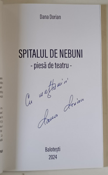 SPITALUL DE NEBUNI , PIESA DE TEATRU de DANA DORIAN , 2024 *DEDICATIE
