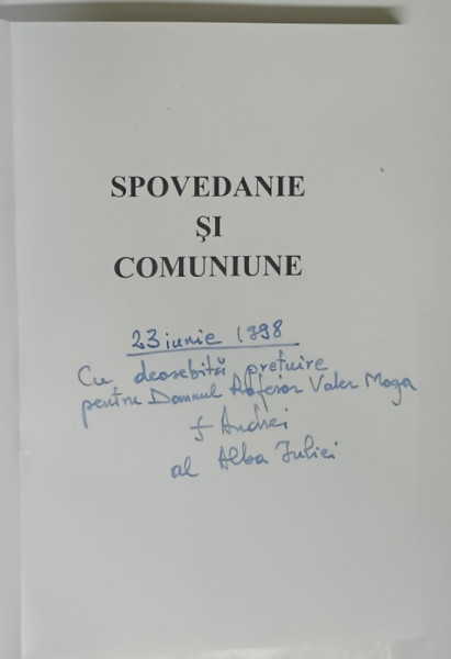 SPOVEDANIE SI COMUNIUNE de ANDREI , EPISCOPUL ALBA IULIEI , 1998 *DEDICATIE