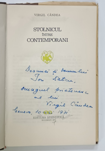STOLNICUL INTRE CONTEMPORANI de VIRGIL CANDEA , 1971 *DEDICATIE