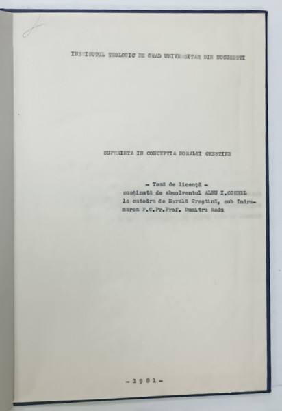 SUFERINTA IN CONCEPTIA MORALEI CRESTINE , TEZA DE LICENTA de ALBU I. CORNEL , 1981