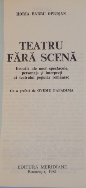 TEATRU FARA SCENA de HORIA BARBU OPRISAN , 1981