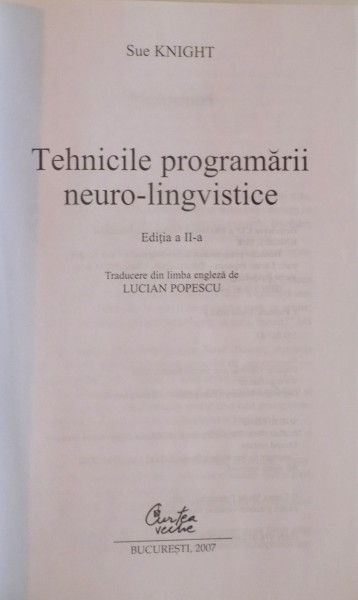 TEHNICILE PROGRAMARII NEURO - LINGVISTICE, EDITIA A II - A de SUE KNIGHT, 2007