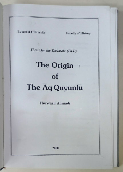 THE ORIGINS OF THE AQ QUYUNLU , thesis for doctorate by HURIVASH AHMADI , 2000 , TEXT IN ENGLEZA SI PERSANA