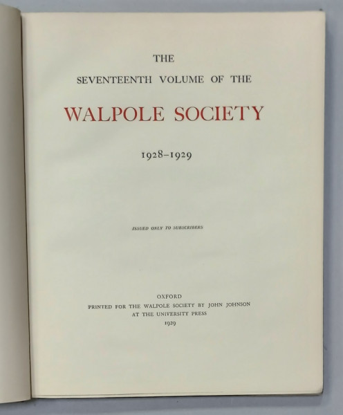 THE SEVENTEENTH VOLUME OF THE WALPOLE SOCIETY 1928 - 1929, APARUTA 1929