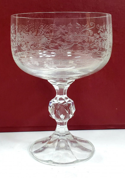 Trei cupe din cristal, gravate cu motive vegetale. H = 12.8 cm