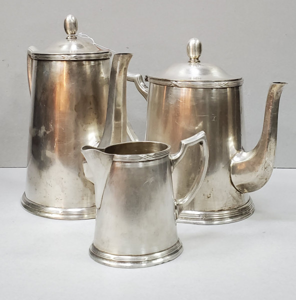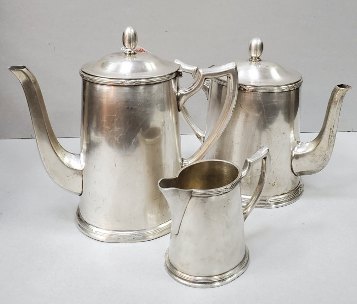 Trei piese pentru servit ceai. Alpaca argintata. 2 ceainice 1 Latiera