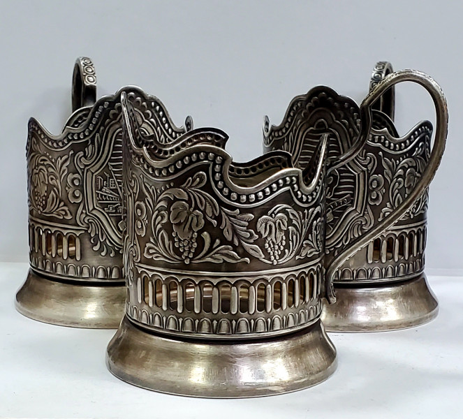 Trei suporturi din metal argintat, jubiliare, 100 ani de la nasterea lui Vladimir Lenin.