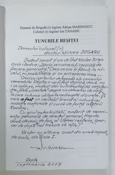 TUNURILE RESITEI de ADRIAN MARINESCU si ION TANASIE , 2017 , DEDICATIE *
