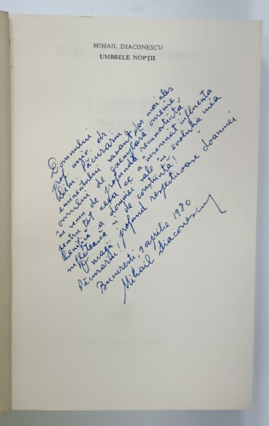 UMBRELE NOPTII , roman de MIHAIL DIACONESCU , 1980 , DEDICATIE *