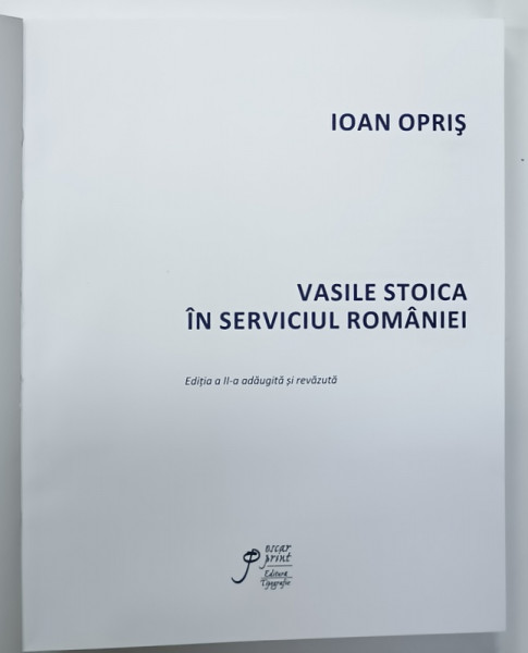 VASILE STOICA IN SERVICIUL ROMANIEI de IOAN OPRIS , 2018 , BOGAT ILUSTRATA