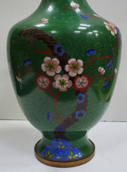 Vaza Cloisonne, decorata cu motive florale. H = 22.5 cm