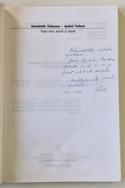 VIATA INTRE DESTIN SI ISTORIE de CONSTANTIN VISINESCU si ANDREI VOINEA , 2005 , DEDICATIE *
