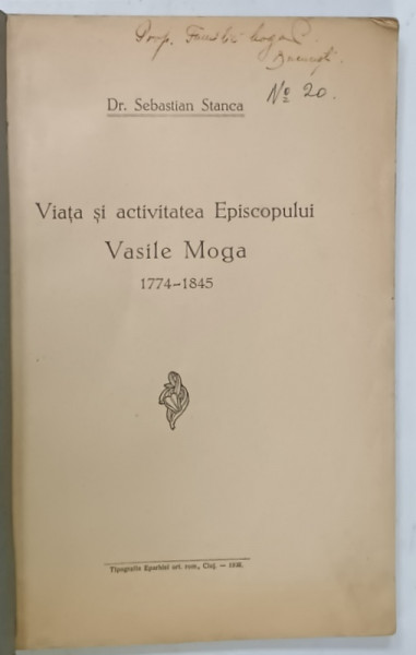 VIATA SI ACTIVITATEA EPISCOPULUI VASILE MOGA 1774 - 1845 de Dr. SEBASTIAN STANCA , 1939