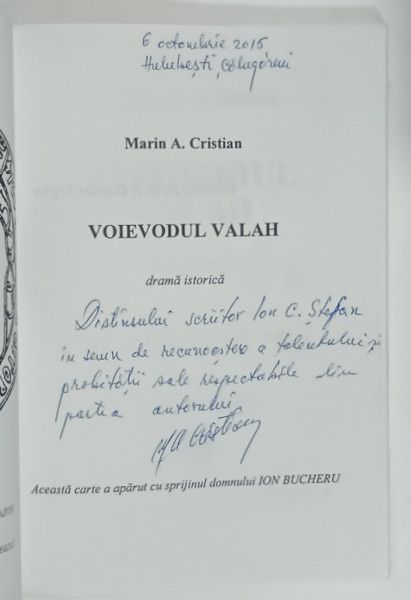 VOIEVODUL VALAH , DRAMA ISTORICA de MARIN CRISTIAN , 2014 , DEDICATIE *