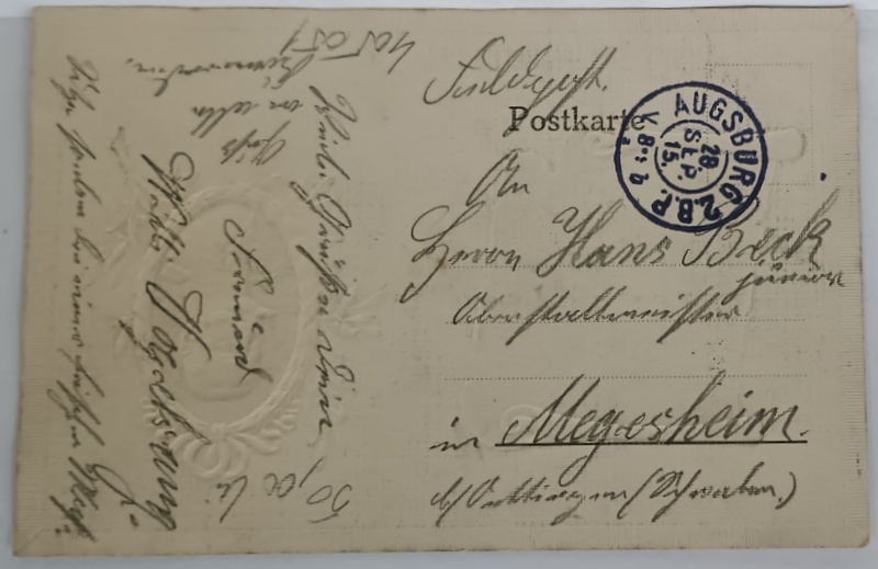 ' VORWARTS ! MIT GOTT FUR KAISER UND REICH ( INAINTE ! CU DUMNEZEU PENTRU TARA SI KAISER ) ' von HINDENBURG , CARTE POSTALA EMBOSATA CU PORTETUL ACESTUIA IN MEDALION AURIT SI CITAT , 1915