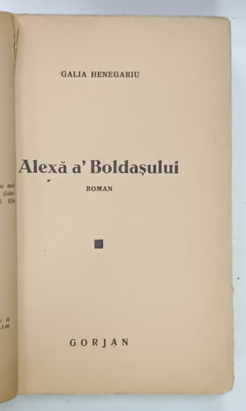 ALEXA A BOLDASULUI , roman de GALIA HENEGARU , ANII '40 , COPERTA ORIGINALA BROSATA
