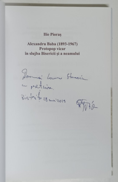 ALEXANDRU BABA ( 1893 - 1967 ) , PROTOPOP VICAR IN SLUJBA BISERICII SI A NEAMULUI de ILIE PIORAS , 2018 *DEDICATIE
