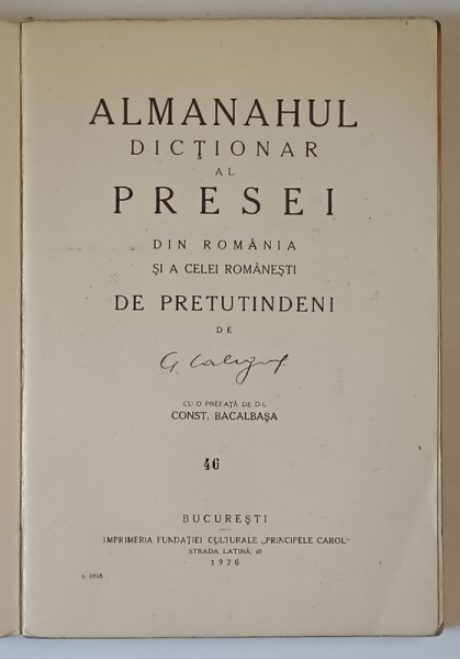 ALMANAHUL DICTIONAR AL PRESEI DIN ROMANIA , intocmit de C. CALIGA , 1926