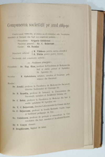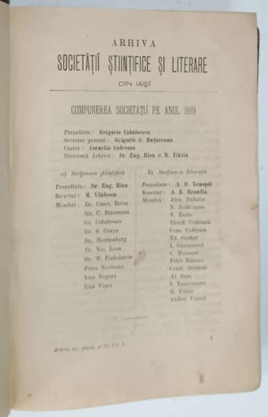 ARHIVA SOCIETATII STIINTIFICE SI LITERARE DIN IASI , ANII 1889 -1890