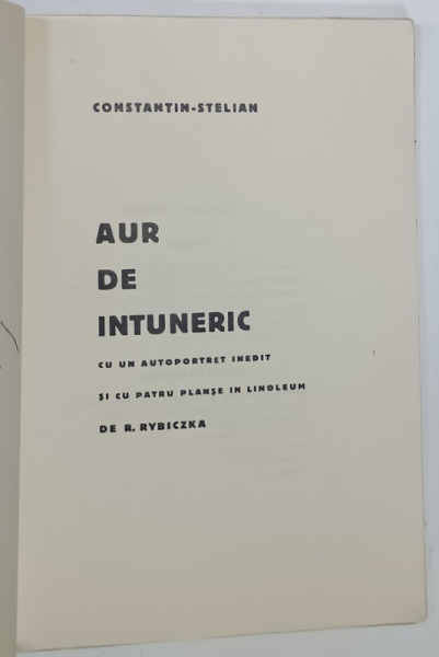 AUR DE INTUNERIC , versuri de CONSTANTIN - STELIAN , cu un autoportet inedit si patru planse in linoleum de R. RYBICZKA , 1943
