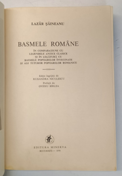 BASMELE ROMANE de LAZAR SAINEANU , 1978 *MINIMA UZURA
