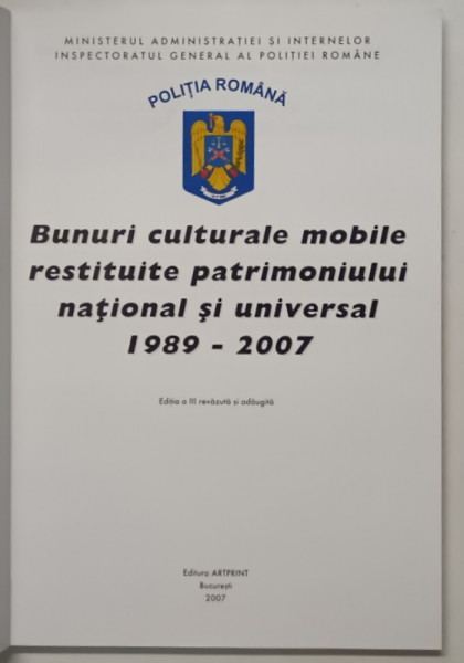 BUNURI CULTURALE MOBILE RESTITUITE PATRIMONIULUI NATIONAL SI UNIVERSAL , 1989 - 2007 , 2007