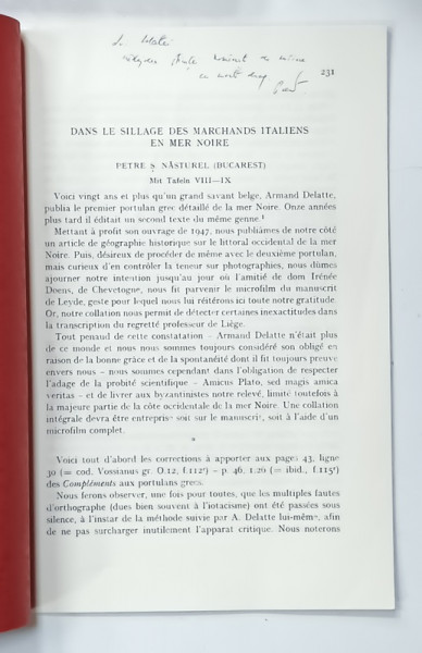 BYZANTINISCHE FORSCHUNGEN ( CERCETARI DE BIZANTOLOGIE ) , CONTINE : DANS LE SILLAGE DES MARCHANDS ITALIENS EN MERI NOIRE par PETRE S. NASTUREL , TEXT IN FRANCEZA , REVISTA GERMANA , BAND IV , 1972, DEDICATIE *