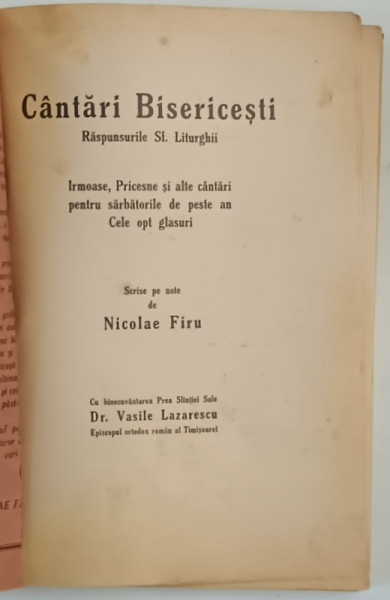CANTARI BISERICESTI , RASPUNSURILE SF. LITURGHII , IRMOASE , PRICESNE SI ALTE CANTARI PENTRU SARBATORILE DE PESTE AN , CELE OPT GLASURI , scrise pe note de NICOLAE FIRU , 1943