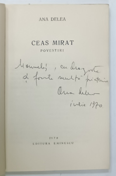 CEAS MIRAT , POVESTIRI de ANA DELEA , 1970, DEDICATIE * , PRIMA EDITIE *