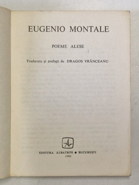 CELE MAI FRUMOASE POEZII , POEME ALESE de EUGENIO MONTALE , 1983