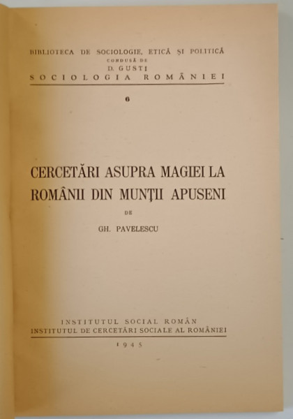 CERCETARI ASUPRA MAGIEI LA ROMANII DIN MUNTII APUSENI de GH. PAVELESCU , 1945
