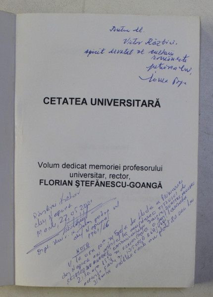 CETATEA UNIVERSITARA . TEXTE SI EVOCARI de FLORIAN STEFANESCU GOANGA , 2001