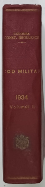 COD MILITAR , VOLUMUL II , 1934 de COLONEL CONST . NEGULESCU , 1934