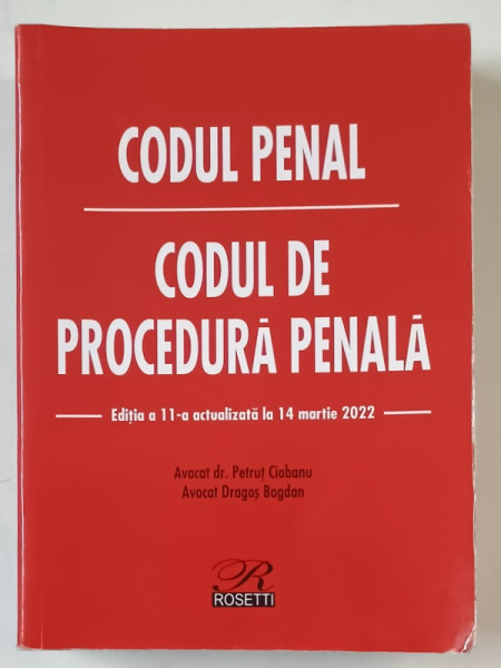 CODUL PENAL / CODUL DE PROCEDURA PENALA de PETRUT CIOBANU si DRAGOS BOGDAN , 2022