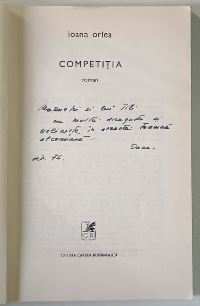 COMPETITIA , roman de IOANA ORLEA , 1974 *DEDICATIE