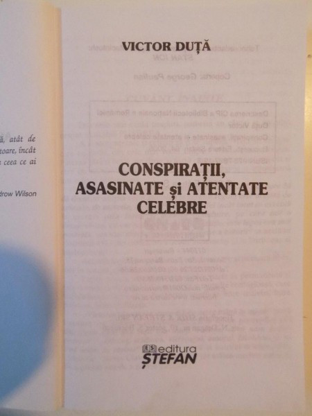 CONSPIRATII ASASINATE SI ATENTATE CELEBRE de VICTOR DUTA 2005