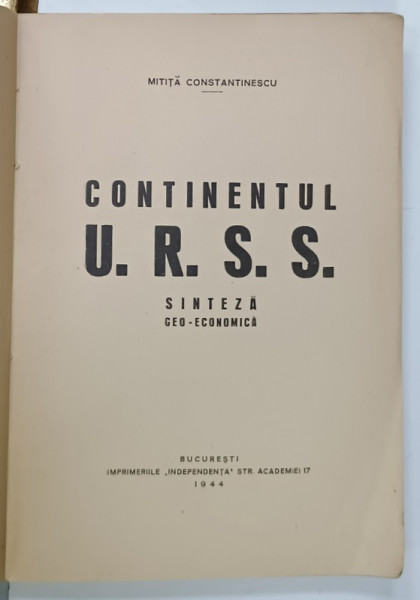 CONTINENTUL U.R.S.S. de MITITA CONSTANTINESCU , 1944 , DEDICATIE *