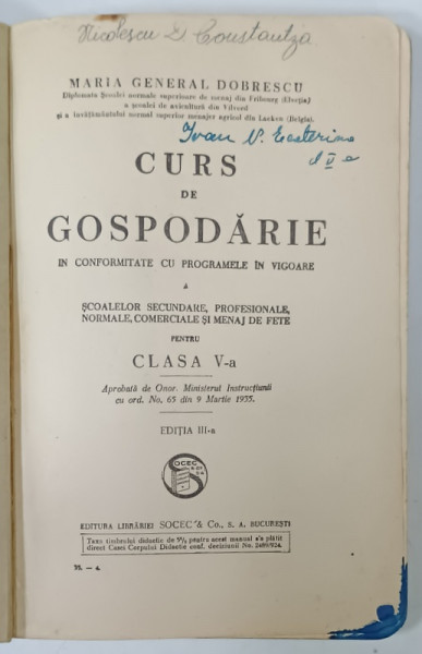EDITURA LIBRARIEI SOCEC et CO. , 159 PAGINI , COPERTA BROSATA ,PREZINTA URME DE UZURA SI PETE DE CERNEALA