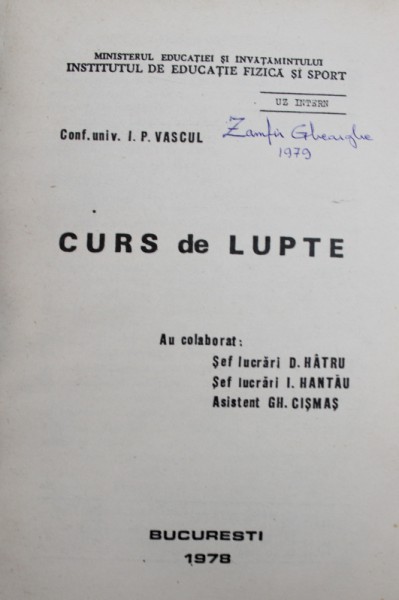 EDITATA DE MINISTERUL EDUCATIEI SI INVATAMANTULUI / INSTITUTUL DE EDUCATIE FIZICA SI SPORT , 200 PAG.