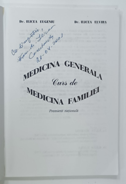 CURS DE MEDICINA GENERALA , MEDICINA FAMILIEI de EUGENIU ILICEA si ELVIRA ILICEA , 1998, DEDICATIE *