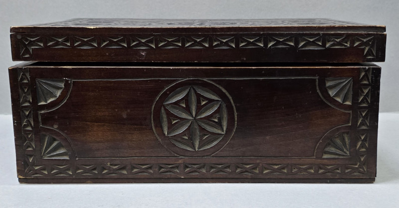 Cutie din lemn sculptata in stil neoromanesc, compartimentata.