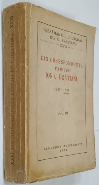 DIN CORESPONDENTA FAMILIEI ION C. BRATIANU , 1887 - 1888 , VOLUMUL III , APARUTA 1934
