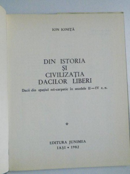 DIN ISTORIA SI CIVILIZATIA DACILOR LIBERI de ION IONITA , IASI 1982