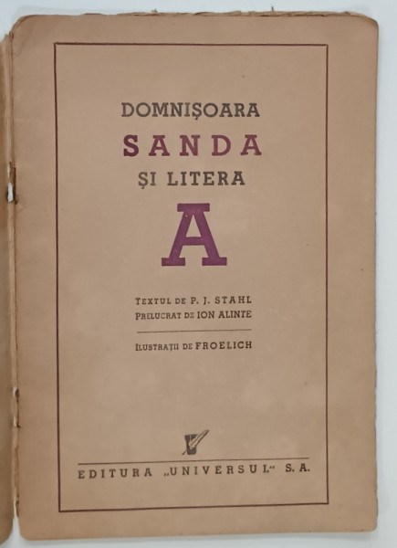 DOMNISOARA SANDA SI LITERA A , text de P.J. STAHL , ilustratii de FROELICH , ANII '30 , PREZINTA PETE SI URME DE UZURA