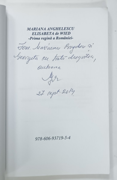 ELISABETA DE WIED - PRIMA REGINA A ROMANIEI de MARIANA ANGHELESCU , 2014 , DEDICATIE *