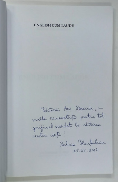 ENGLISH CUM LAUDE de RALUCA GHENTULESCU , 2016 , DEDICATIE *