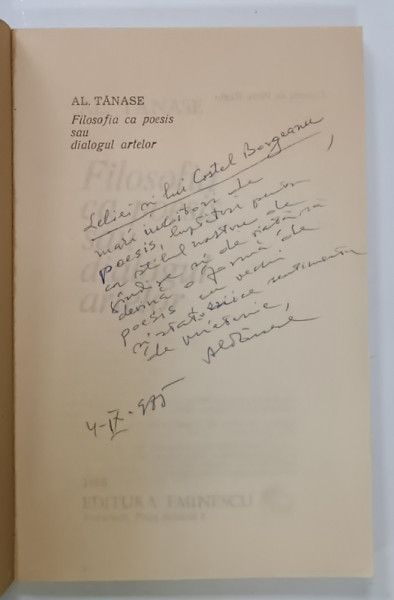 EDITURA EMINESCU , 290 PAG. , COPERTA ORIGINALA BROSATA, CONTINE DEDICATIA AUTORULUI *