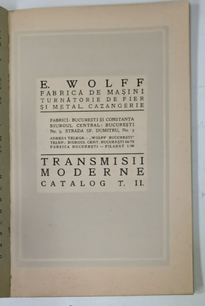 FIRMA E. WOLFF , BUCURESTI